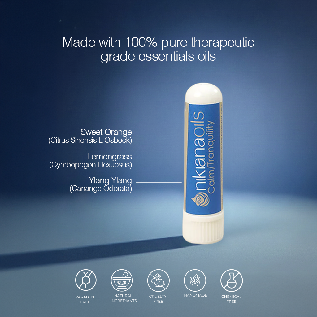 Calm & Tranquility Nasal Inhaler is expertly crafted to soothe both body and mind. This essential oil synergy blend helps reduce stress effects, promoting relaxation without inducing sleep. Instead, it elevates your mood, fostering a sense of hope and mental clarity, making it an ideal companion for moments when you need to leave worries behind and regain balance.