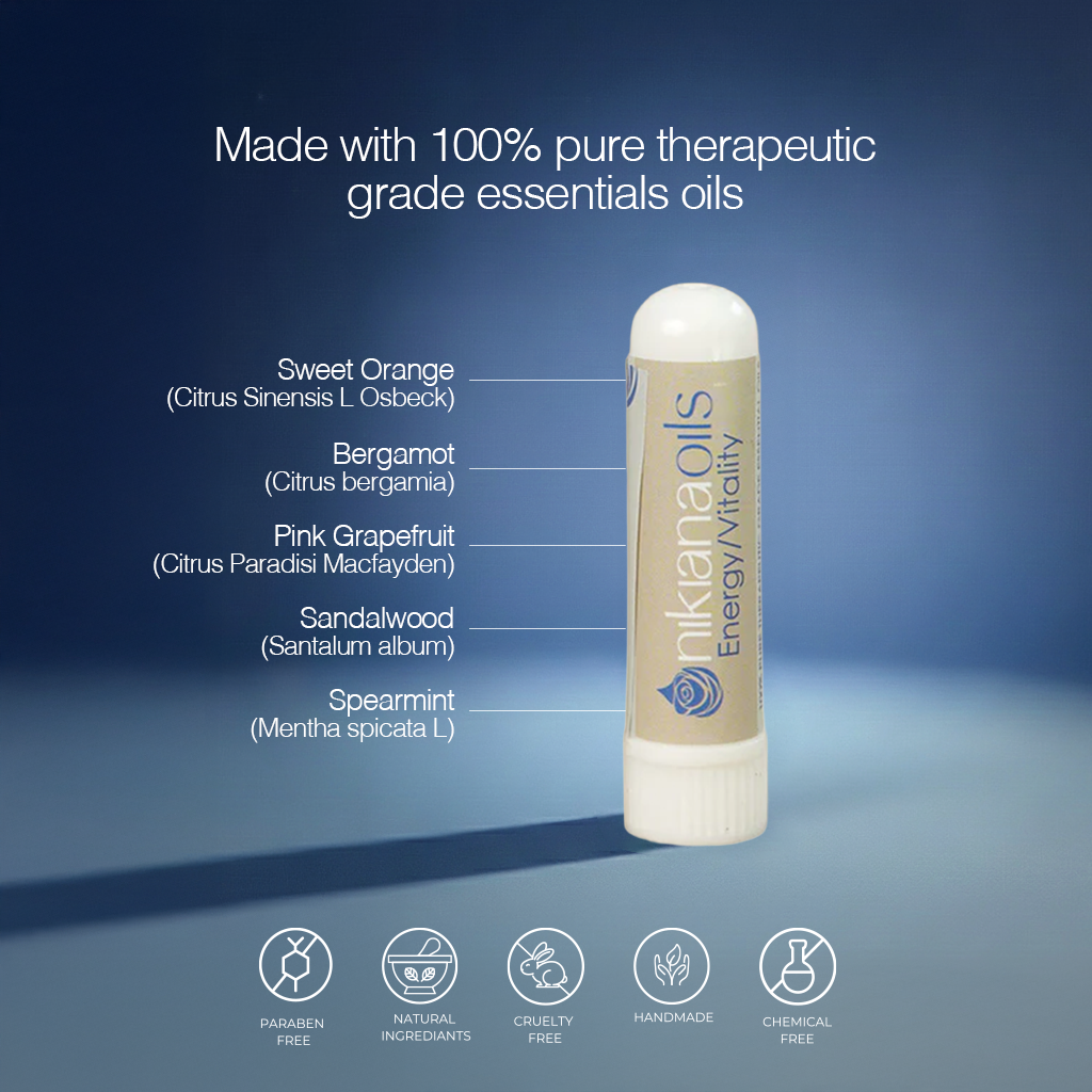 Our energy and vitality essential oil synergy blend is a natural, refreshing way to promote physical and mental well-being, helping you to stay alert, focused, and full of life throughout the day.