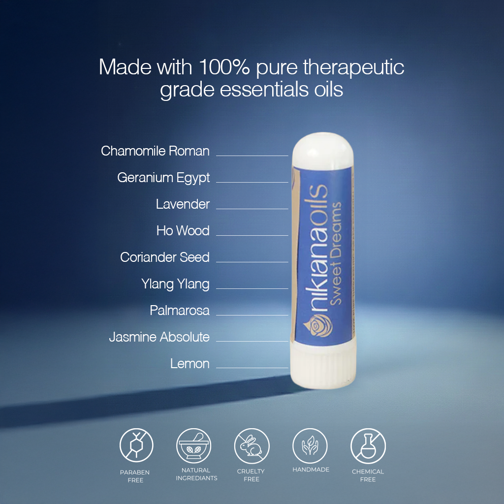 Our Sweet Dreams blend features many benefits, such as helping you fill your day with positivity or creating a blissful, tranquil ambience is a natural way to decrease stress and support general well-being.