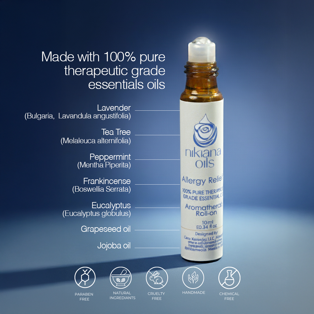 Our essential oil blend for allergy relief combines soothing oils to help alleviate symptoms of seasonal allergies. This blend helps reduce inflammation, clear nasal passages, and ease respiratory discomfort, making it ideal for relieving congestion, sneezing, and itchy eyes. Use it to support your immune system and promote easier breathing during allergy season.